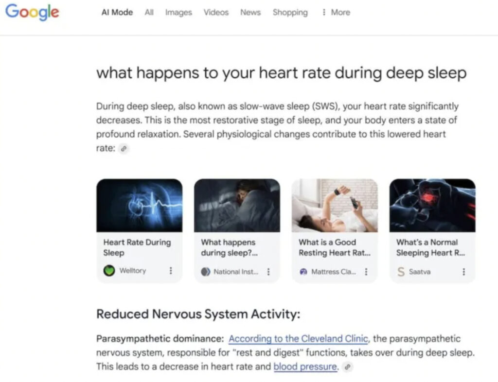 במידה מסוימת, בזמן שגוגל הריצו ניסוי על אחוז מהמשתמשים בכמה מדינות, הניסוי החשוב מתרחש כרגע בקנה מידה הרבה יותר גדול, ולא רק אצל גוגל. השאלה האמיתית היא לא מה תהיה ההשפעה של היעלמות החדשות מתוצאות חיפוש, אלא מה תהיה ההשפעה של היעלמות תוצאות החיפוש בכלל – כמו שאפשר לראות בדוגמה הזו של שימוש בגוגל עם AI Mode: