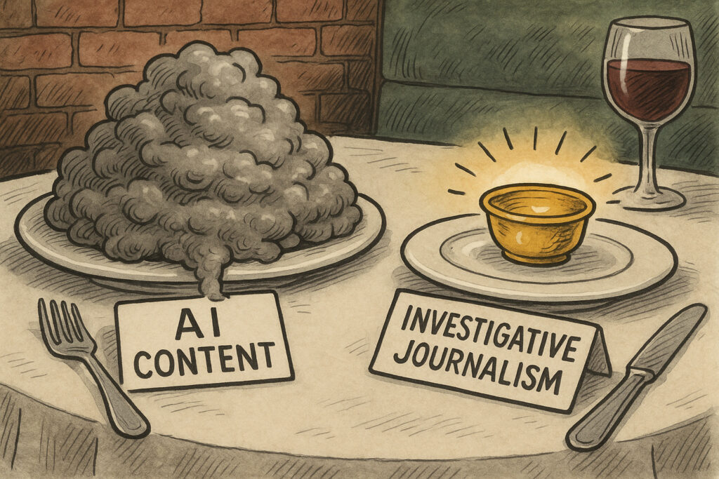 כעת, כאמור, גם הערך של יצירת התוכן מתאפס. גם בלי הדוגמה של Inception Point AI, די ברור שאנחנו עומדים להיות (אם לא כבר) מוצפים בכמויות אסטרונומיות של תוכן. כל פודקאסט, כל כתבה, כל סרטון – כל יחידת תוכן תתחרה לא רק בזירה רוויה בשל עלות הפצה אפסית, אלא בזירה צפופה פי כמה בשל עלות יצירה אפסית. וזה, בעיניי לפחות, איום הרבה יותר גדול על עולם העיתונות בהשוואה לצניחת הטראפיק ממנועי חיפוש: האיום הוא לא רק שנתקשה להפיץ את התוכן במציאות החדשה – אלא שהערך שלו יהיה אפסי.