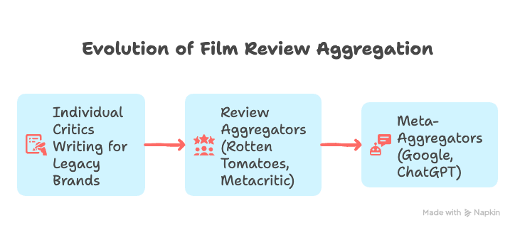 דבר משמעותי נוסף שקרה, היה הסרת החסמים לאגרגציה של ביקורות: אפשר היה לעשות את זה גם קודם (מי זוכר את טבלת המבקרים של עכבר העיר?), אבל כעת אפשר היה לעשות זה ממש בקלות. וכאן נכנסו לתמונה אתרים כמו Rotten Tomatoes ו-Metacritic. למה שאסמוך על הטעם של מבקר בודד, מוכשר ומשכיל ככל שיהיה, ולא על הטעם של עשרות ומאות מבקרים?